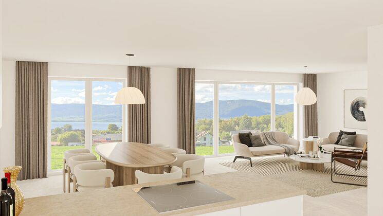 Ce projet de 2 villas (A et B) vous séduira par sa situation privilégiée et sa vue dégagée sur le lac. Nichée entre vergers, vignes, champs et rivages, elle incarne l'alliance parfaite entre nature et modernité !